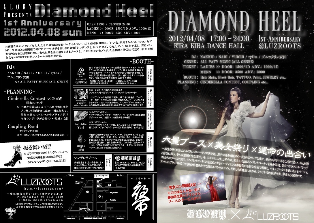 千葉最大級のパーティスペースLUZROOTSにて4月8日(日)に「DIAMONDO HEEL」が開催。