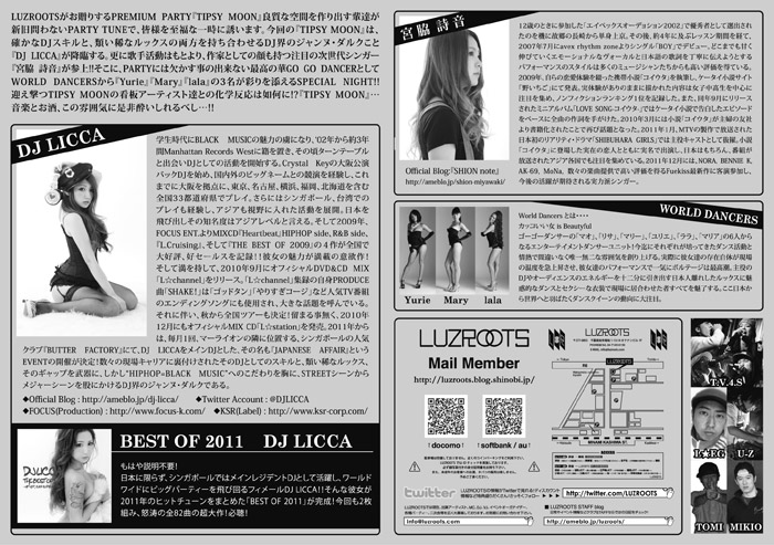 DOOR¥2500 | W/F¥2000 | LUZROOTS MEMBER¥1500