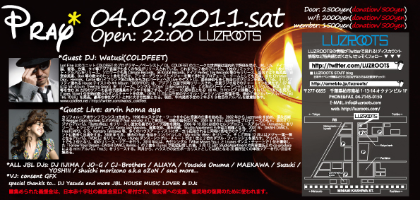 ACLAHAYRが贈る2011年最初のPSYCHEDELIC TRANCE PARTY!!久しぶりにACLAHAYRのメンバーが柏LUZUROOTSに集結!!またLoungeではCable FLOORを開催。今回は24:00までにご来場の女性はエントランスフリー!早くからのご来場お待ちしています。