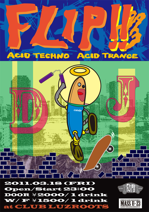 あの伝説のアンダーグランドパーティー集団"MASS U-23”の2,003とCydeBoardによる、実に8年ぶりとなるニューパーティー『FRIP!!』1st Quarter『FLIP01』に続く、2nd Quarter『FLIP02』今回は渋谷"SECO BAR"を拠点に活動しDRUMN’BASSシーンに欠かせないパーティー『HANGOVER』からNO,1 DJのSATOSHIがFLIP!!LOUNGE BASEに初参戦!!